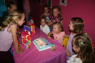 She invited 7 friends and they all got their hair, nails and "make-up" done. They did crafts, walked the red carpet and ate cake! What more could my girly-girl want!? For me, it was the easiest party! We just showed up and they had it all done!
